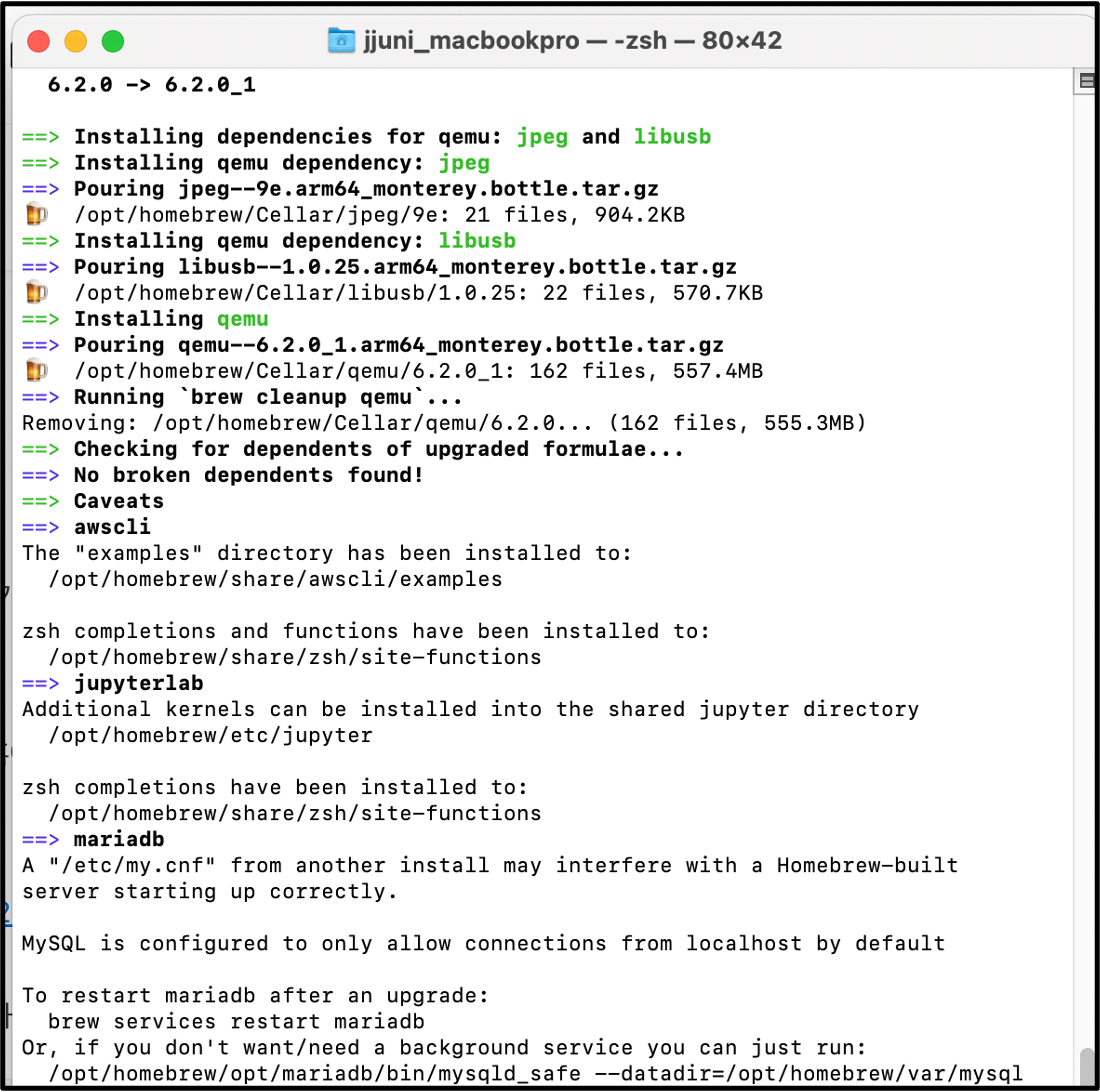 homebrew를 통해 설치한 경우 하단과 같이 설치가 완성됩니다!