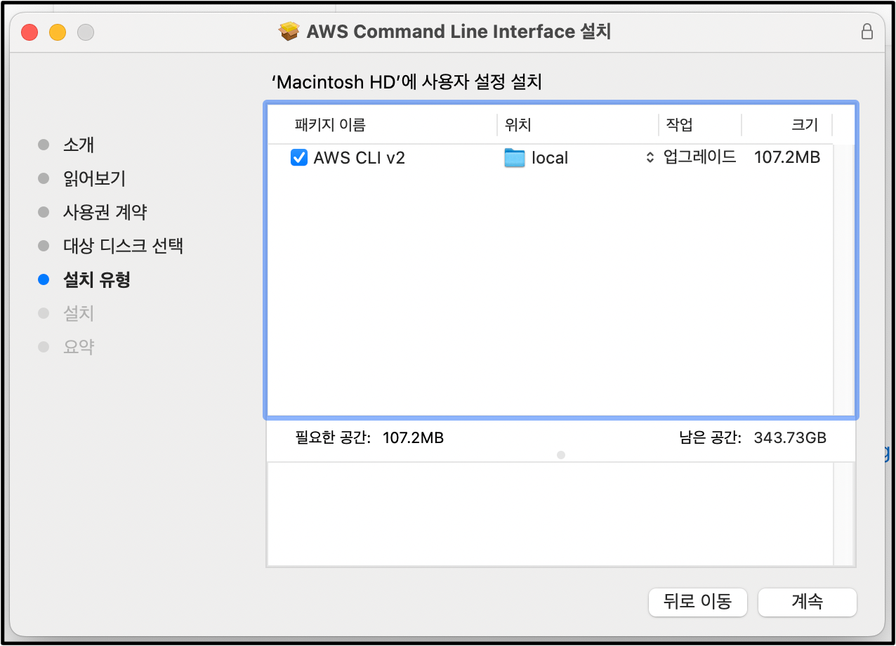 설치 위치가 default 값으로 /usr/local/bin/aws에 저장되게 됩니다!