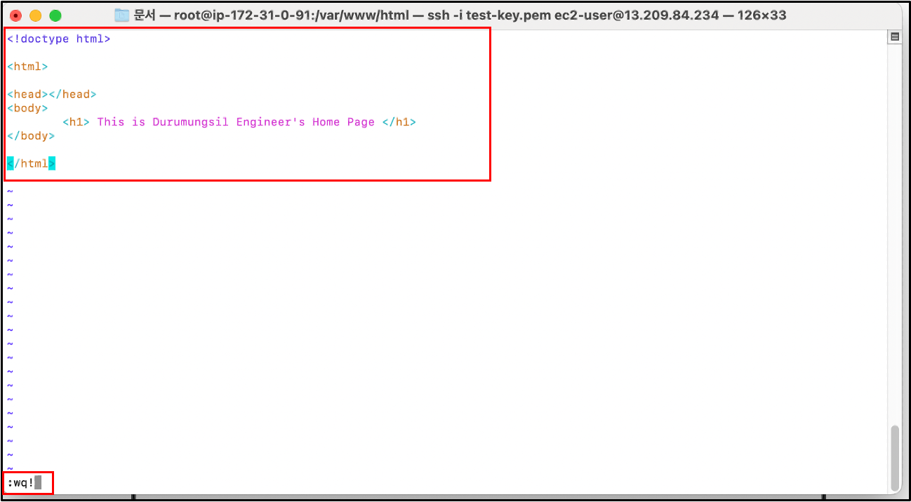 "[ESC] + :wq!"를 통해 저장하고 나가줍니다!