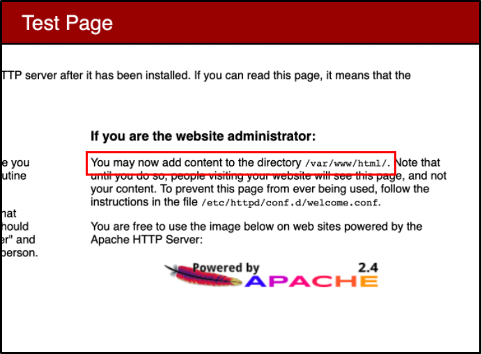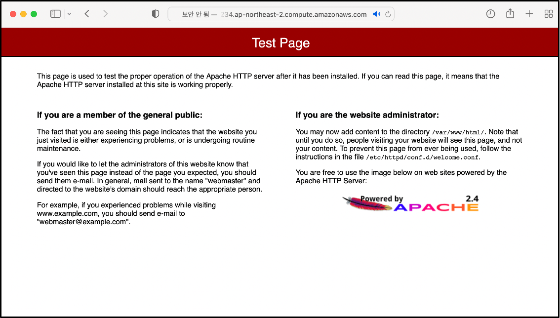 다음과 같이 Test Page가 뜨면 대! 성! 공!입니다!