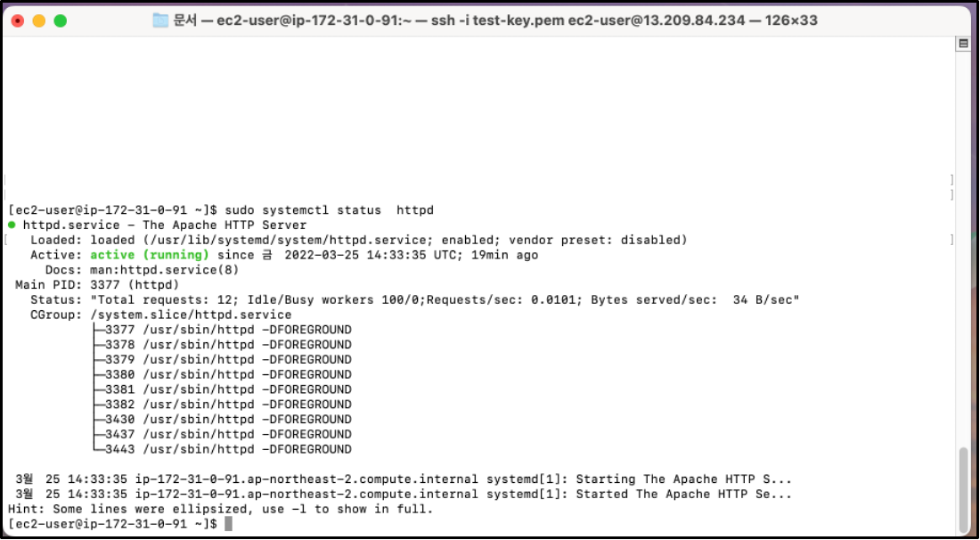 하단의 사진처럼 "active(running)" 상태를 확인해줍니다!