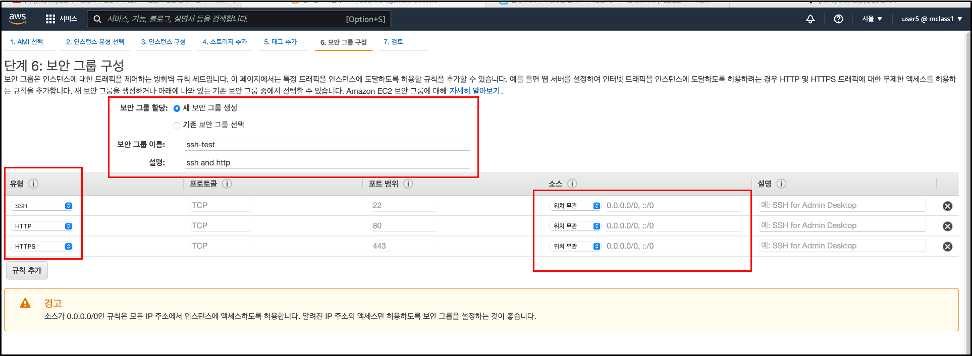 - 보안 그룹에 대한 이름과 설명을 부여하는 것