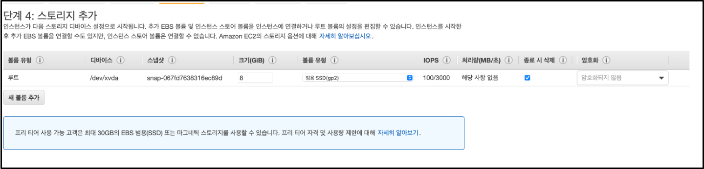 스토리지에 대한 옵션을 지정해주는 단계입니다.