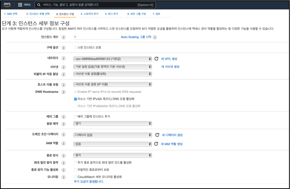 다음에 EC2 인스턴스 옵션에 대해서 하나하나씩