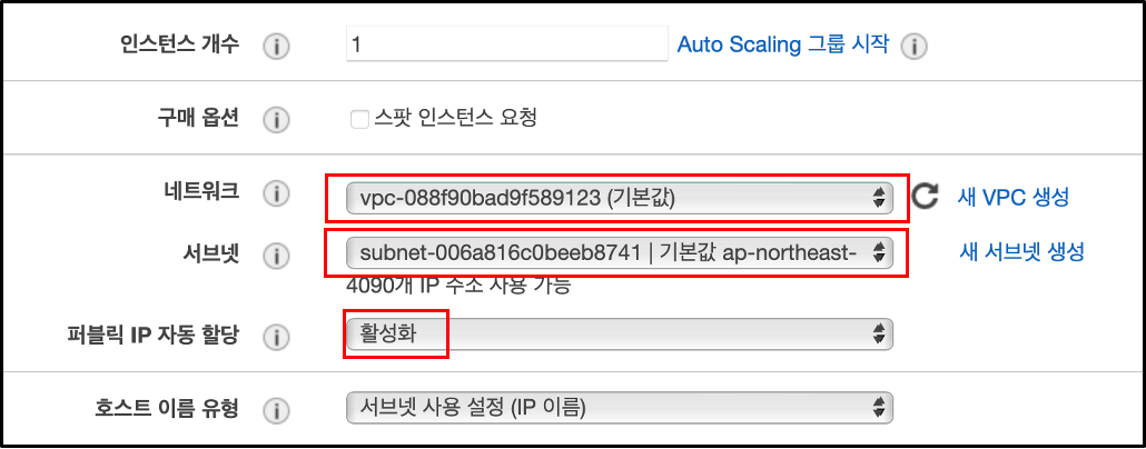 3) 퍼블릭 IP 자동 할당 : 활성화(enable)