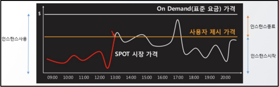 - 사용자가 제시한 가격보다 인스턴스 시장 가격이 높아지게 되면 인스턴스가 종료됩니다.
