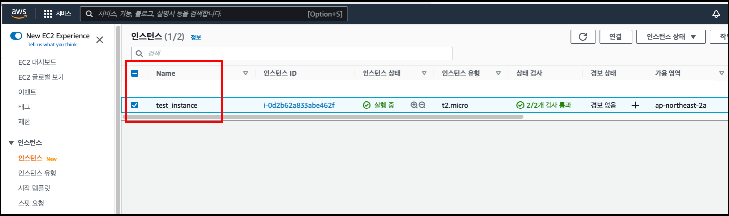 마지막으로, 인스턴스 생성된 것을 확인해줍니다!