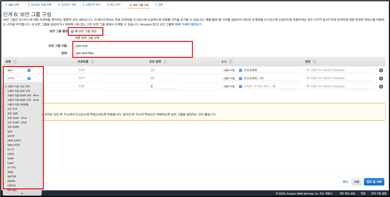 HTTP : 해당 인스턴스로 아파치(웹서버)를 배포하기 위함