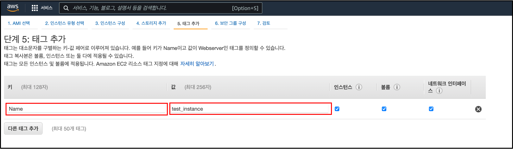 Name이라는 태그 키를 주어 Instance에 이름을 붙여봅시다!