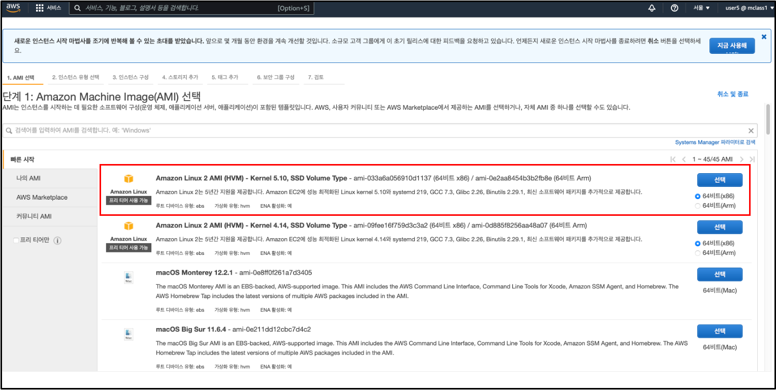 그러면,, 우리는 아마존에서 제공한 AMI를