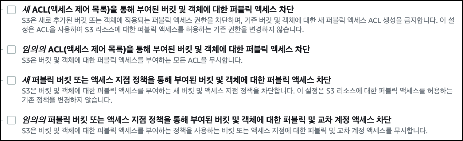 cf) 퍼블릭 액세스 설정에서 [모든 퍼블릭 액세스 차단]을 했다면,