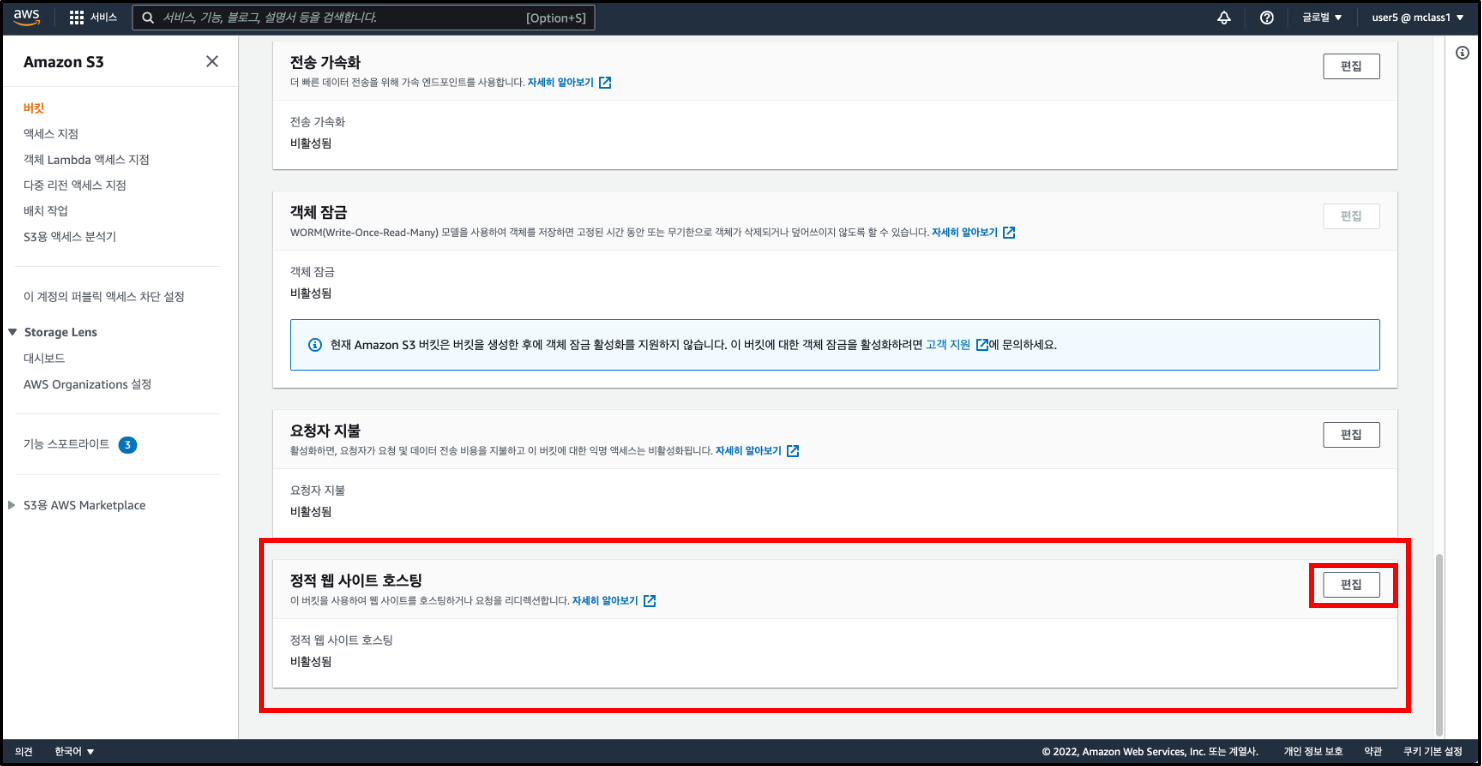 [버킷 버전 관리]는 S3의 기능 중 버저닝에 해당됩니다!