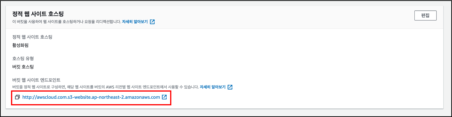 버킷 웹 사이트 엔드포인트 테스트를 해봅니다.