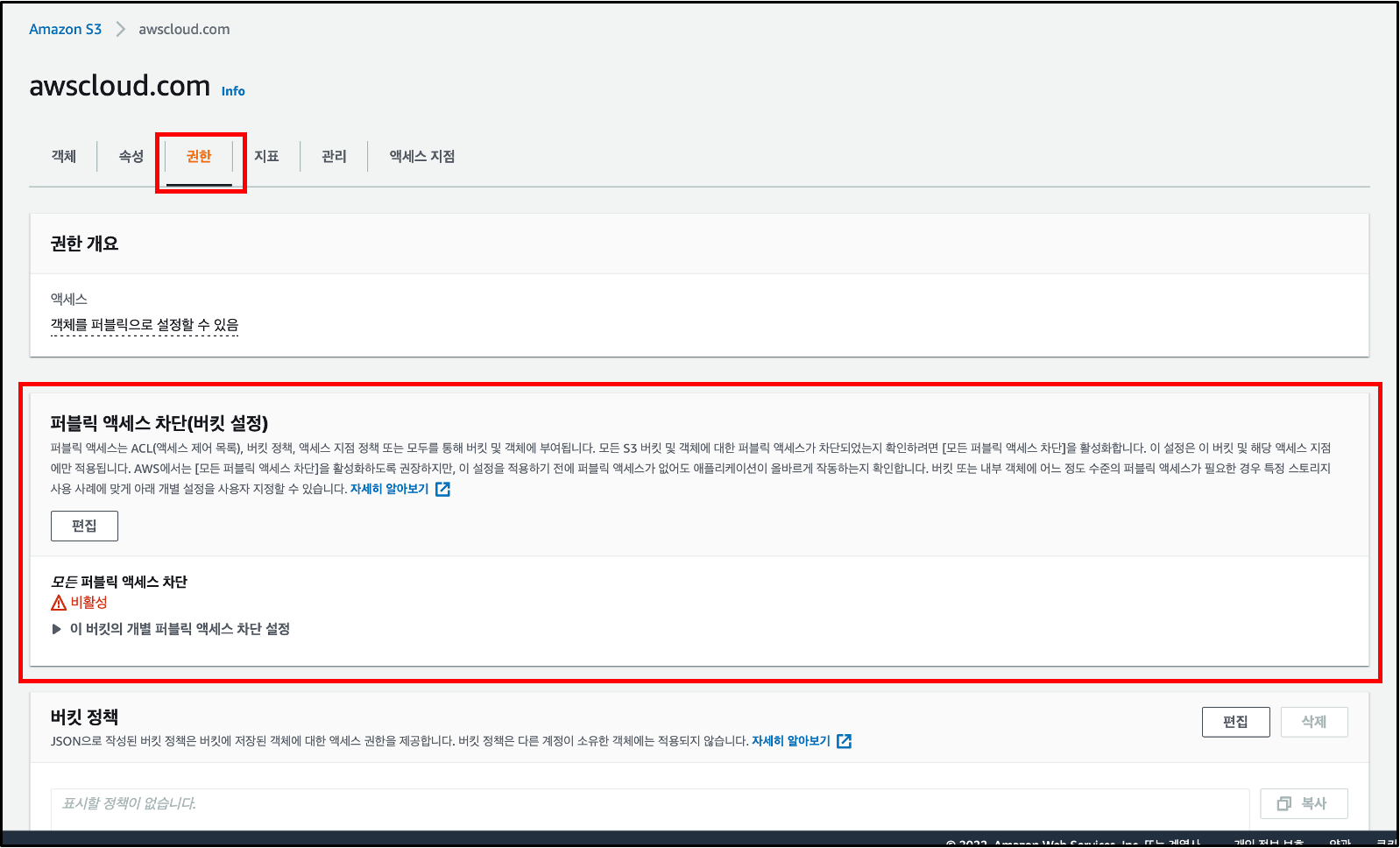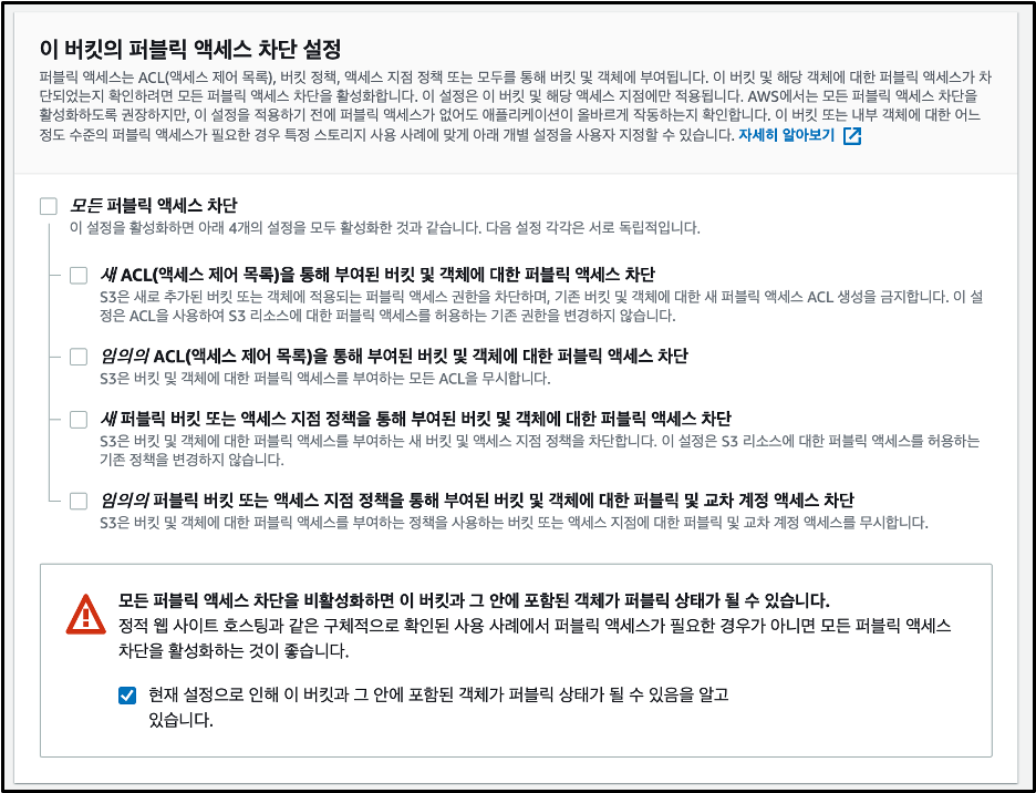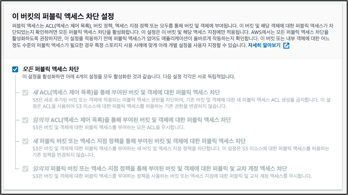 cf) 퍼블릭 액세스 설정에서 [모든 퍼블릭 액세스 차단]을 했다면,