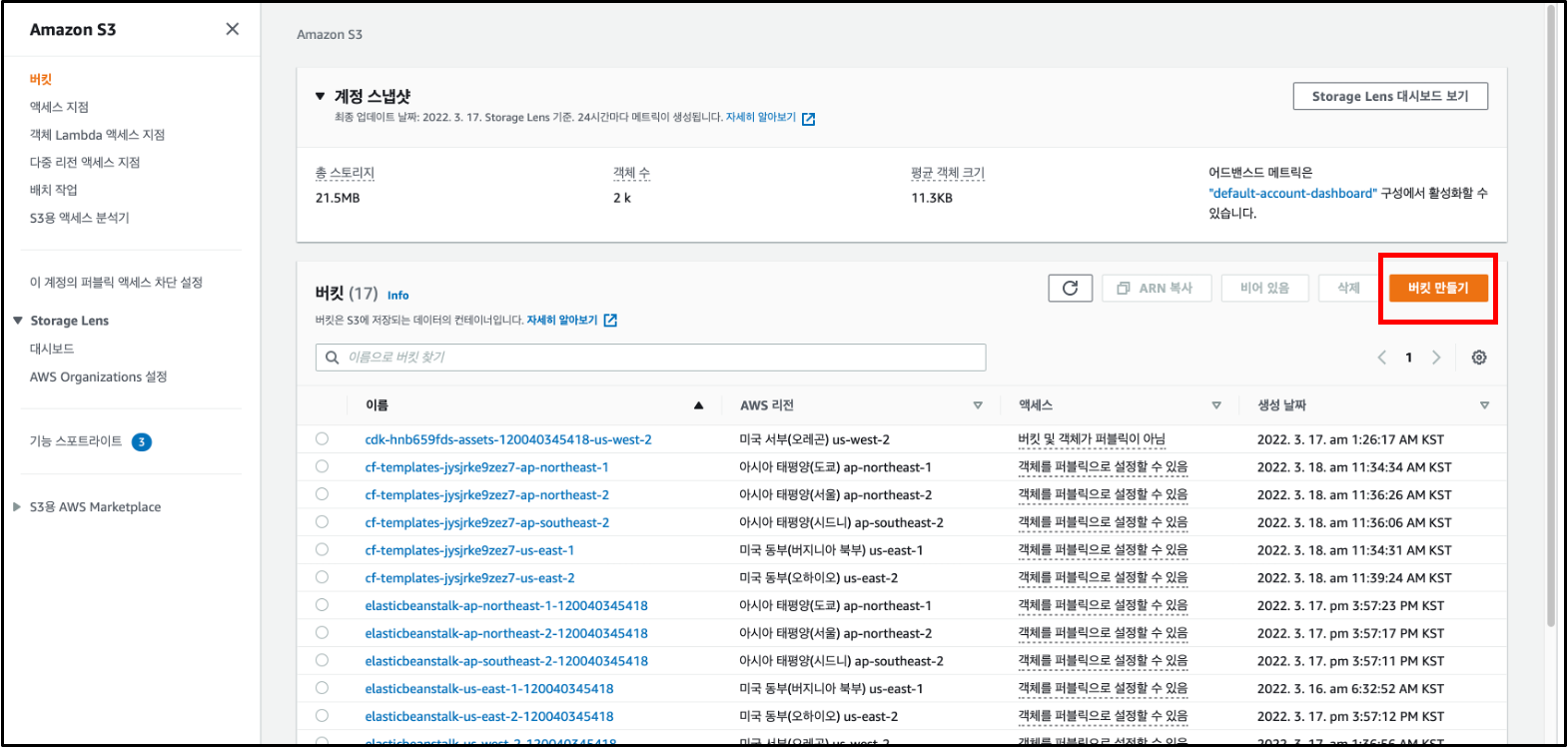 1 ) 다음 사진과 같이, 버킷 만들기 선택