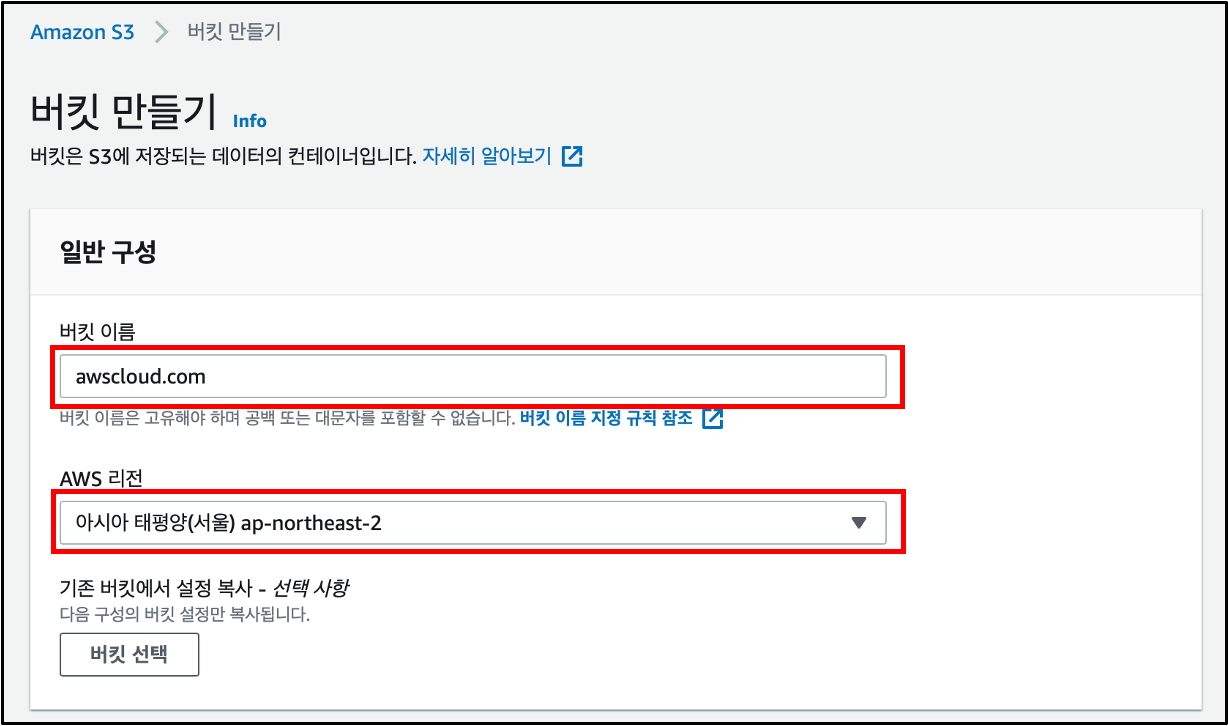 2) 버킷 만들기 옵션 설정 - 일반 구성