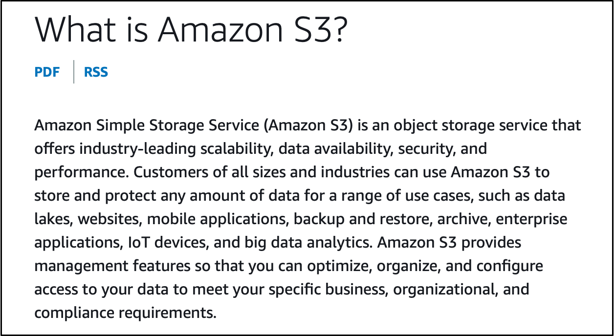 What is Amazon S3? Amazon Simple Storage Service (Amazon S3) is an object storage service that offers industry-leading scalability, data availability, security, and performance. Customers of all sizes and industries can use Amazon S3 to store and protect a